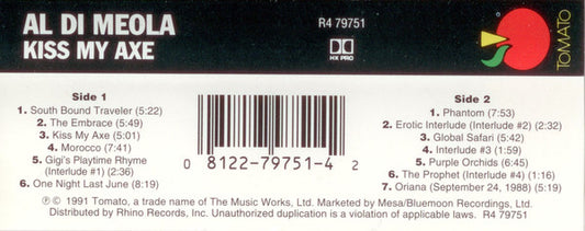 Al Di Meola Project - Kiss My Axe (Cass, Album, Dol) (Near Mint (NM or M-))