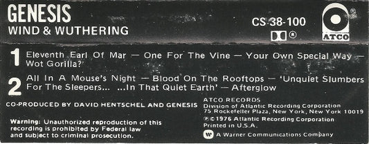 Genesis - Wind & Wuthering (Cass, Album, SR,) (Very Good Plus (VG+))