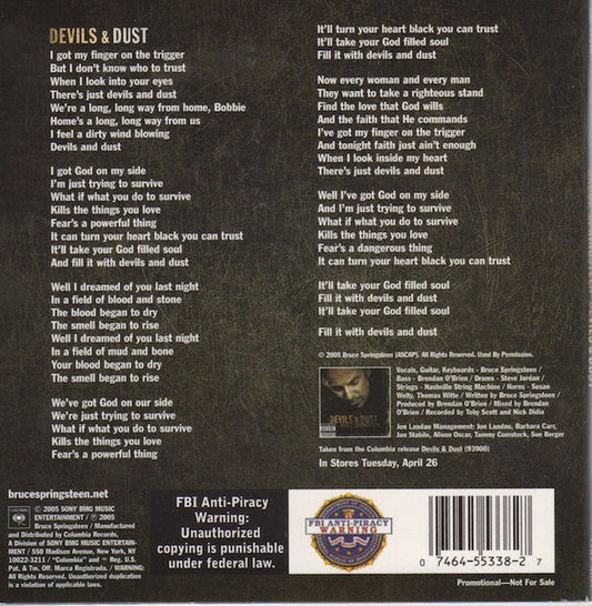 Bruce Springsteen - Devils & Dust (CD, Single, Promo, Car) (Near Mint (NM or M-))